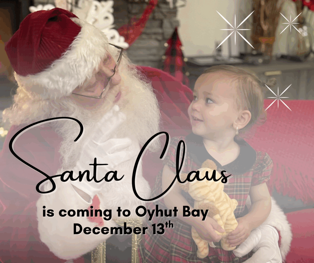 Santa Claus is coming to Oyhut Bay! He will be here for photos with kids of all ages and pets too. Times and information to be posted soon! We will also have a special BRUNCH with SANTA available Sunday December 14th. Sign ups will be available soon!