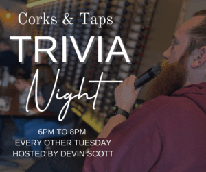 Trivia, drinks, and a little friendly rivalry—every other Tuesday at Corks & Taps. See you there!