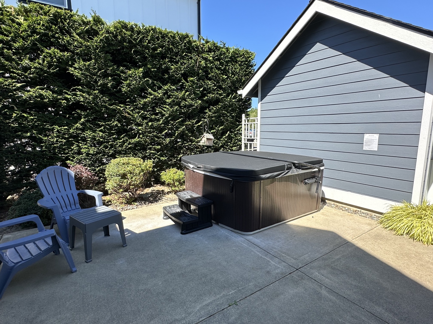 Outside, tranquility awaits. Unwind in the brand-new hot tub beneath the stars, or lounge on the private patio surrounded by the beauty of the resort grounds. For a little friendly competition, head over to the newly added game area, offering fun for all ages. And for those traveling green, a dedicated ChargePoint J1772 plug EV charger is available right on site, making it easy to explore the coast without compromise.