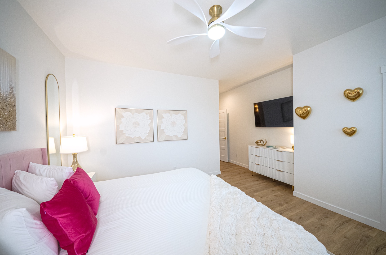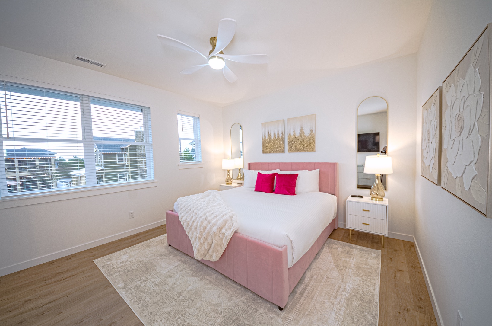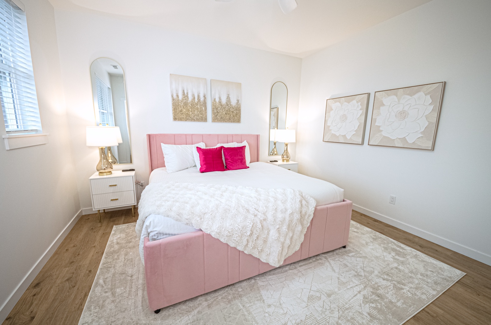 Step inside this thoughtfully curated retreat, where layers of pink and gold, luminous textures, and elegant details create an atmosphere that feels both romantic and modern. Plush seating, chic décor, and carefully chosen accents add warmth and sophistication, while large windows bathe the space in natural light—perfect for getting ready, gathering, and capturing beautiful memories against a glowing coastal backdrop.