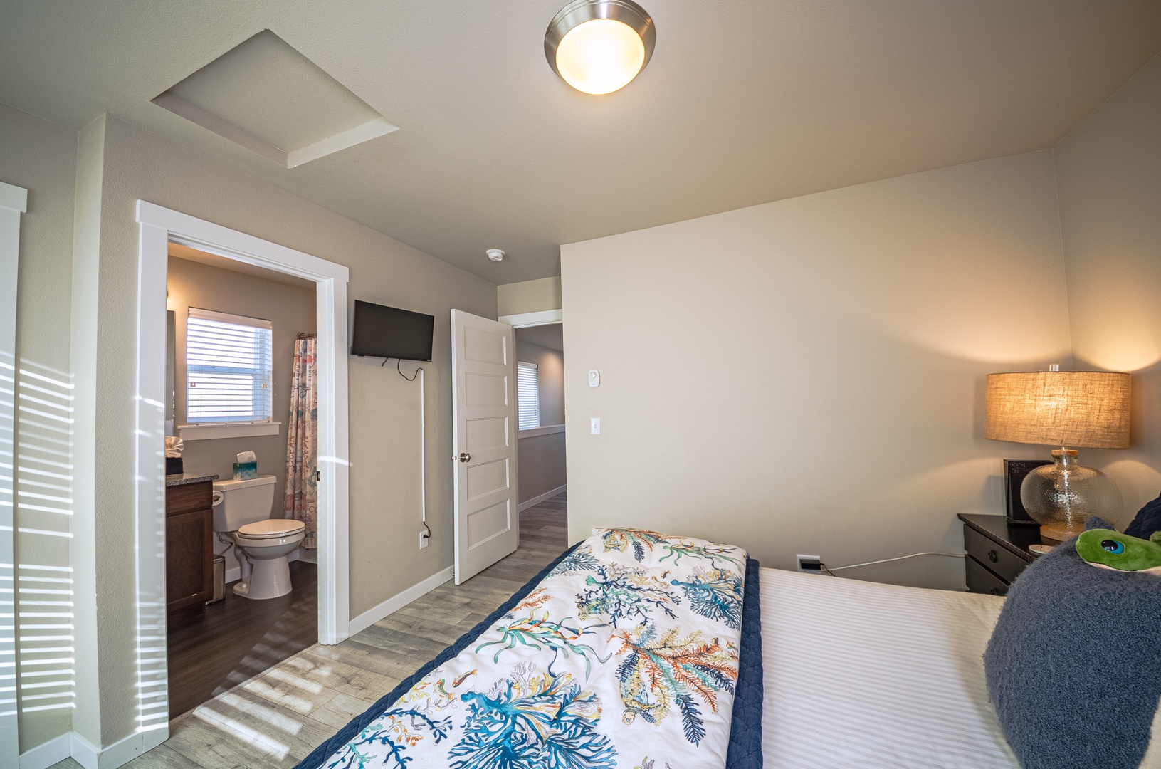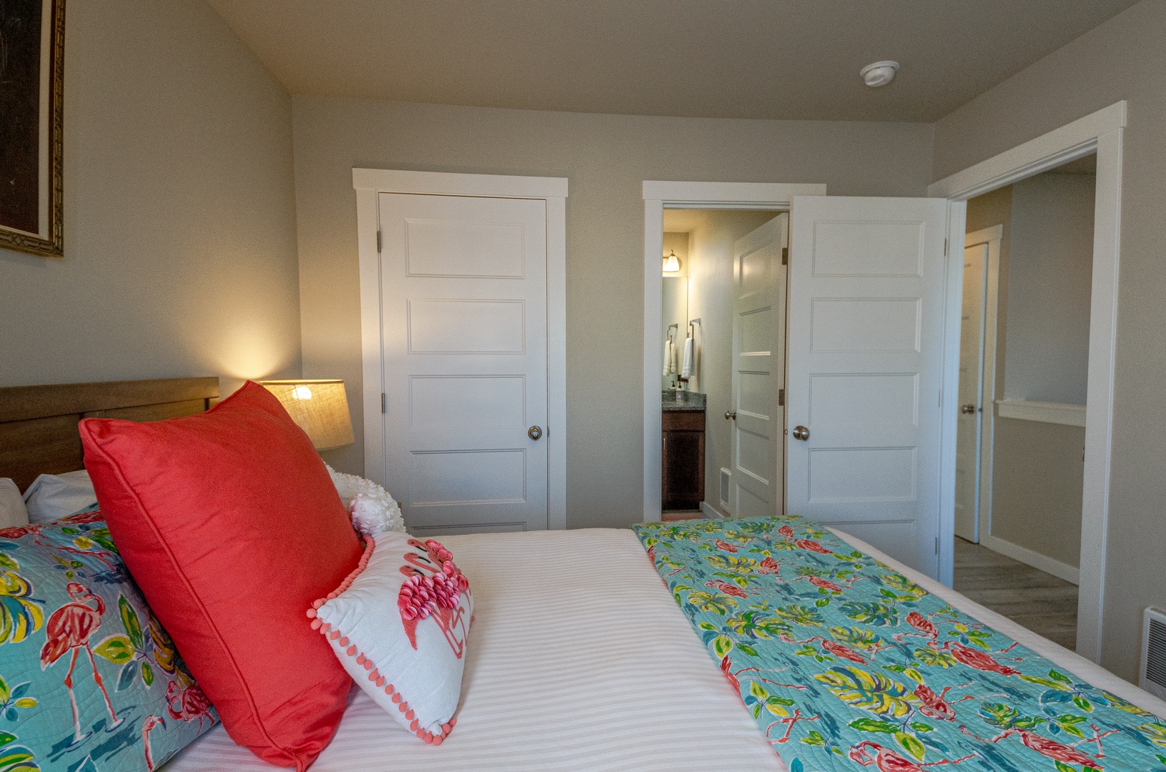 Ideal for couples traveling together or groups wanting extra privacy, the home features two primary bedrooms—each with its own en-suite—along with a convenient powder room. Every corner feels inviting, bright, and crafted for rest.