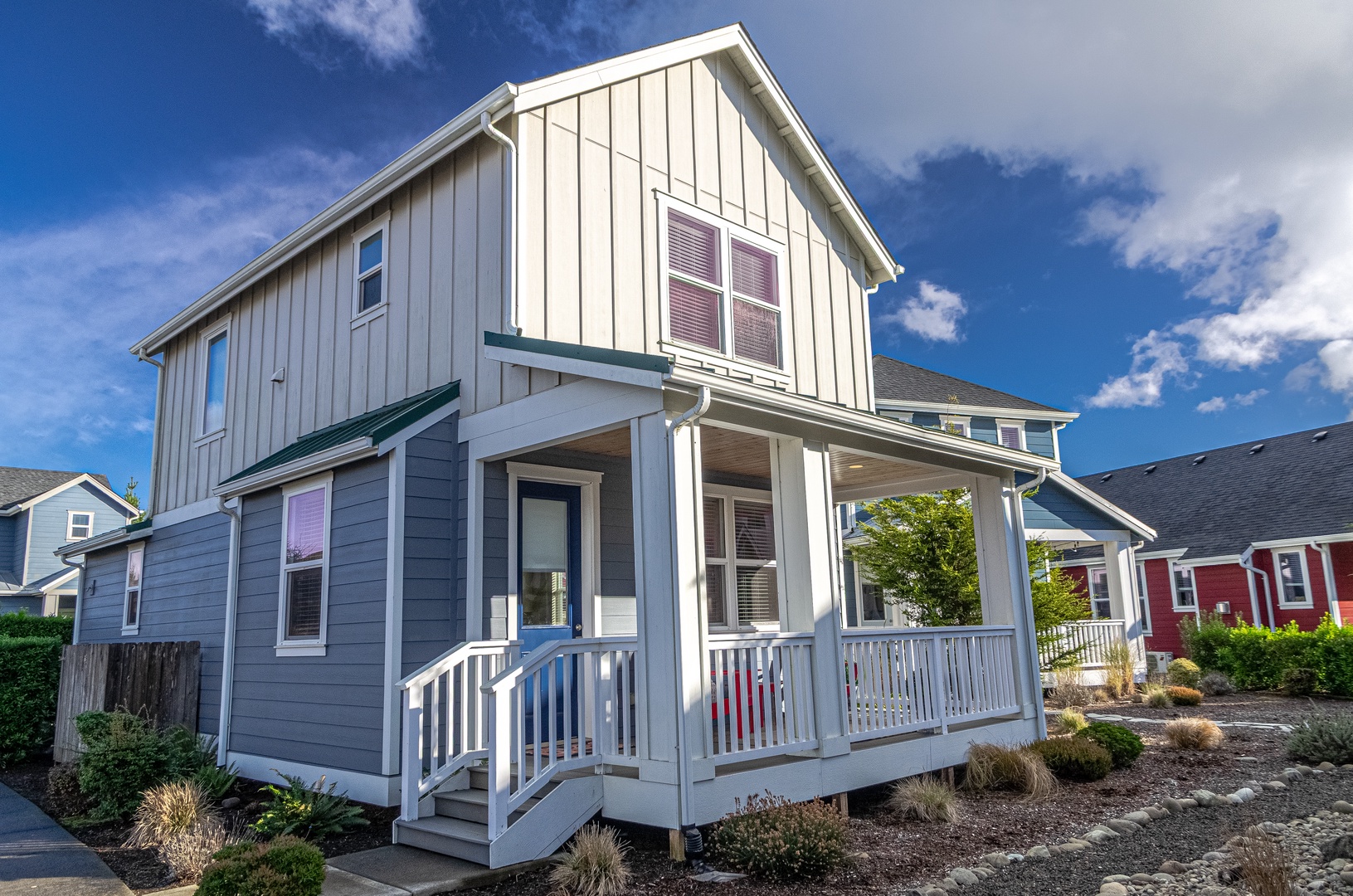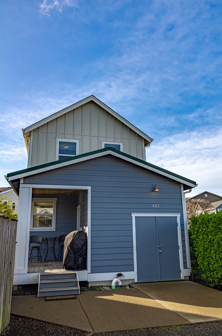 Outdoors, Sandy Feet and Doggy Treats offers everything you need to unwind. Fire up the gas grill, soak in the private hot tub, or settle into the comfortable front or back porch seating. The back porch overlooks a peaceful green space—perfect for morning coffee, quiet reading, or simply enjoying the coastal breeze.