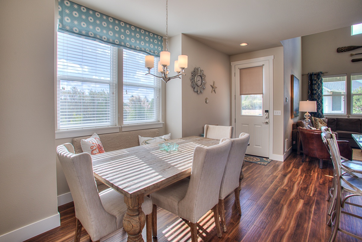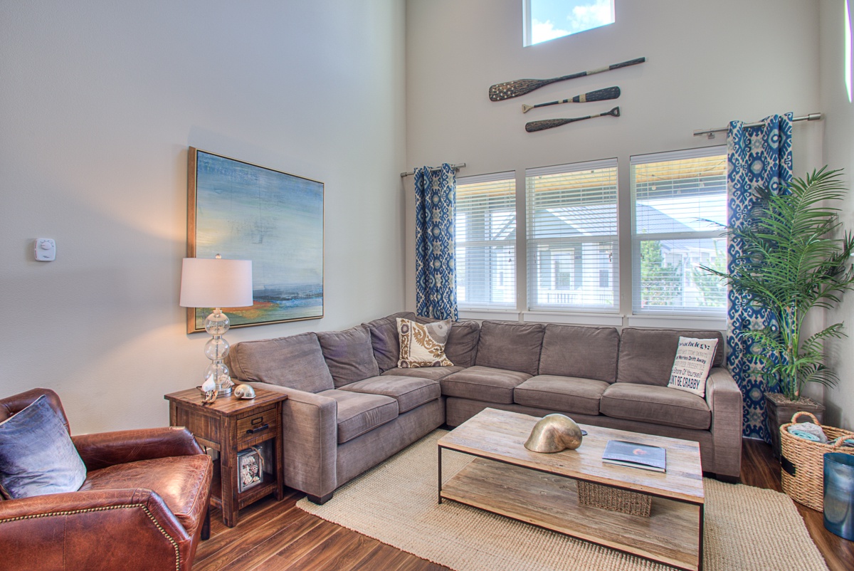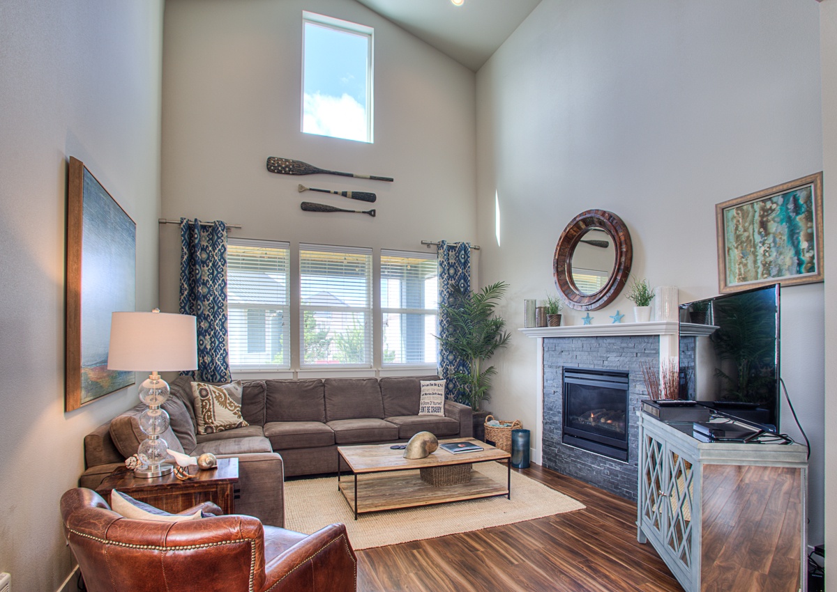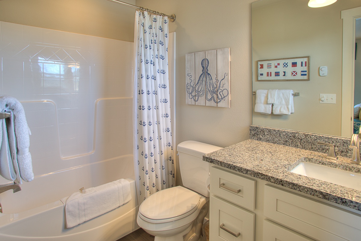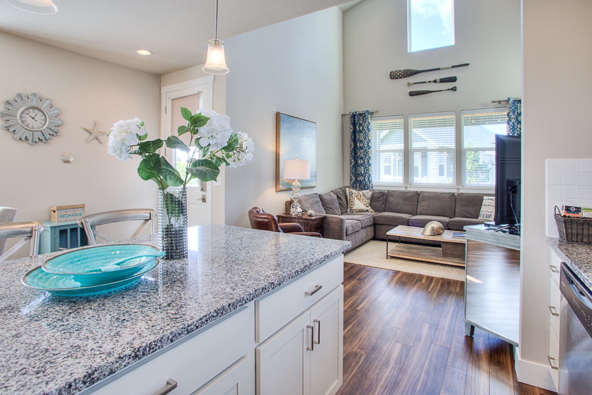 Just Beachy is the perfect retreat for your next beach adventure. It is a spacious three bedroom, three bath home with open concept living spaces, and ADA access with ramp entrance. Spend time on the large covered deck in rain or shine, enjoy s’mores at the outside fire pit, or curl up with a good book by the indoor gas fireplace. The large hot tub is a guest favorite. The fully equipped kitchen has everything you need, including kids’ dishes and a waffle maker.