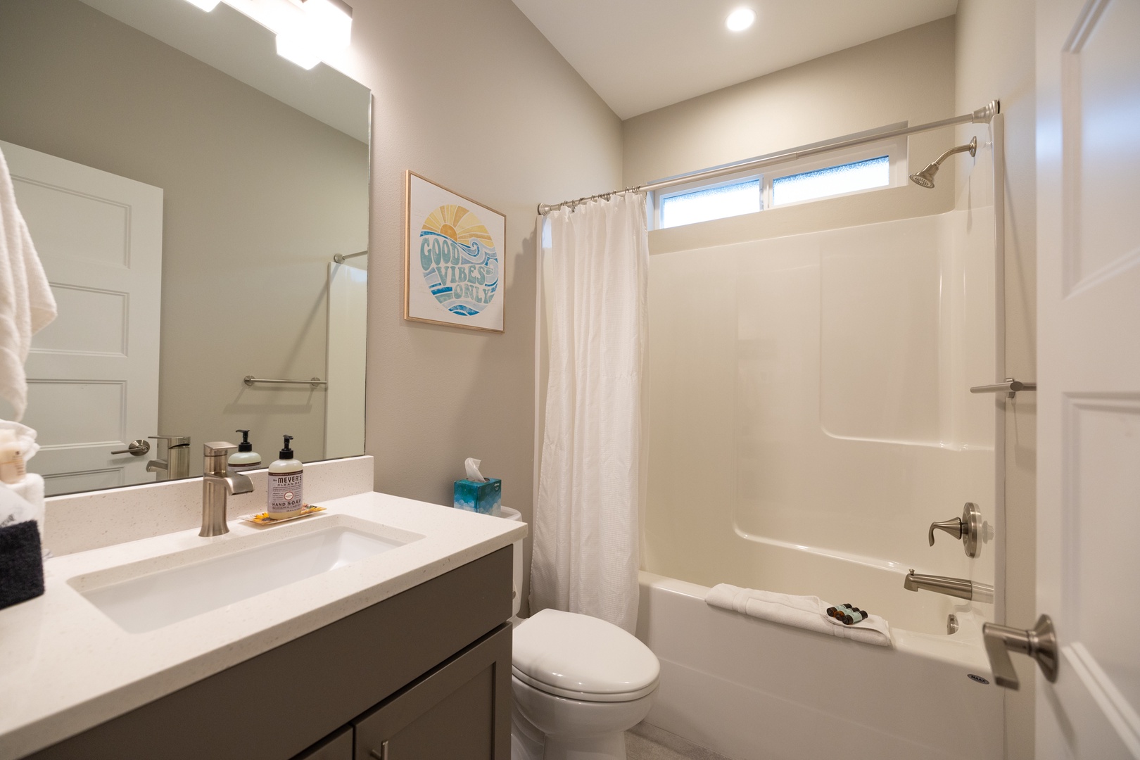 A comfortable two bedroom, two bathroom, you will love everything Sunflower Beach Cottage has to offer. Open concept living spaces, a back porch to shake the sand off your boots, and a front porch for relaxing with friends and family await you upon arrival.