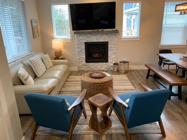 This beautiful vacation rental is the ultimate escape, boasting three bedrooms, two and a half baths, and plenty of space to unwind. With open concept living and a spacious outdoor porch, you can breathe in the salty ocean air and relish in quality time with loved ones. After a day at the beach, snuggle up by the outdoor firepit in a fully fenced backyard or gather around the indoor fireplace with a board game or two, for a cozy evening in.